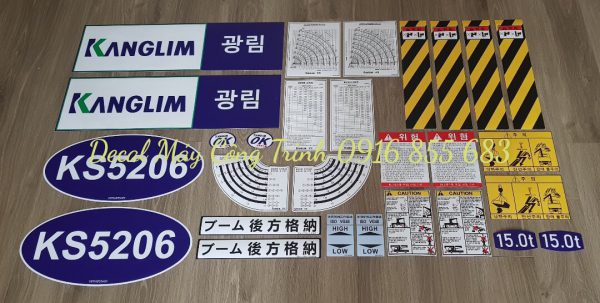 1. Decal Máy Công Trình có đầy đủ các sản phẩm TEM CẦN CẨU KANGLIM cho rất nhiều loại cần cẩu KANGLIM từ 6 tấn đến 20 tấn phục vụ anh em.