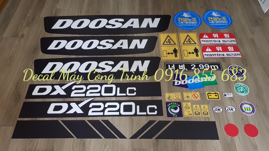 TEM MÁY XÚC DOOSAN DX220LC CHẤT LƯỢNG CAO – BÁM DÍNH CỰC TỐT- CHỐNG PHAI MÀU